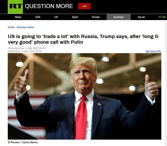 针对特朗普的“通俄门”调查早前以“其未与莫斯科勾结”的结论告终,当地时间5月3日,如释重负的特朗普与俄总统普京通起了电话,两人这次一聊就是足足一个多小时。