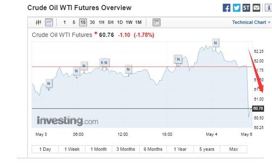 WTI原油跌幅扩大至2.74%,报60.24美元/桶。布油亦追随WTI原油跌势,目前跌2.26%。
