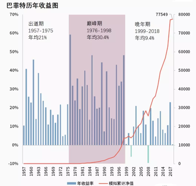 但是过去20年,伯克希尔平均年化收益率从1976年-1998年的30.4%下降至9.4%,跑输标普500指数很常见,有时跑赢也赢得不多。这源于伯克希尔管理的总资金量太大,所以对于挑选股票的市值和持仓量都会有所限制。还有一个重要的原因就是错失了近10年表现很好的科技股,例如谷歌和亚马逊。