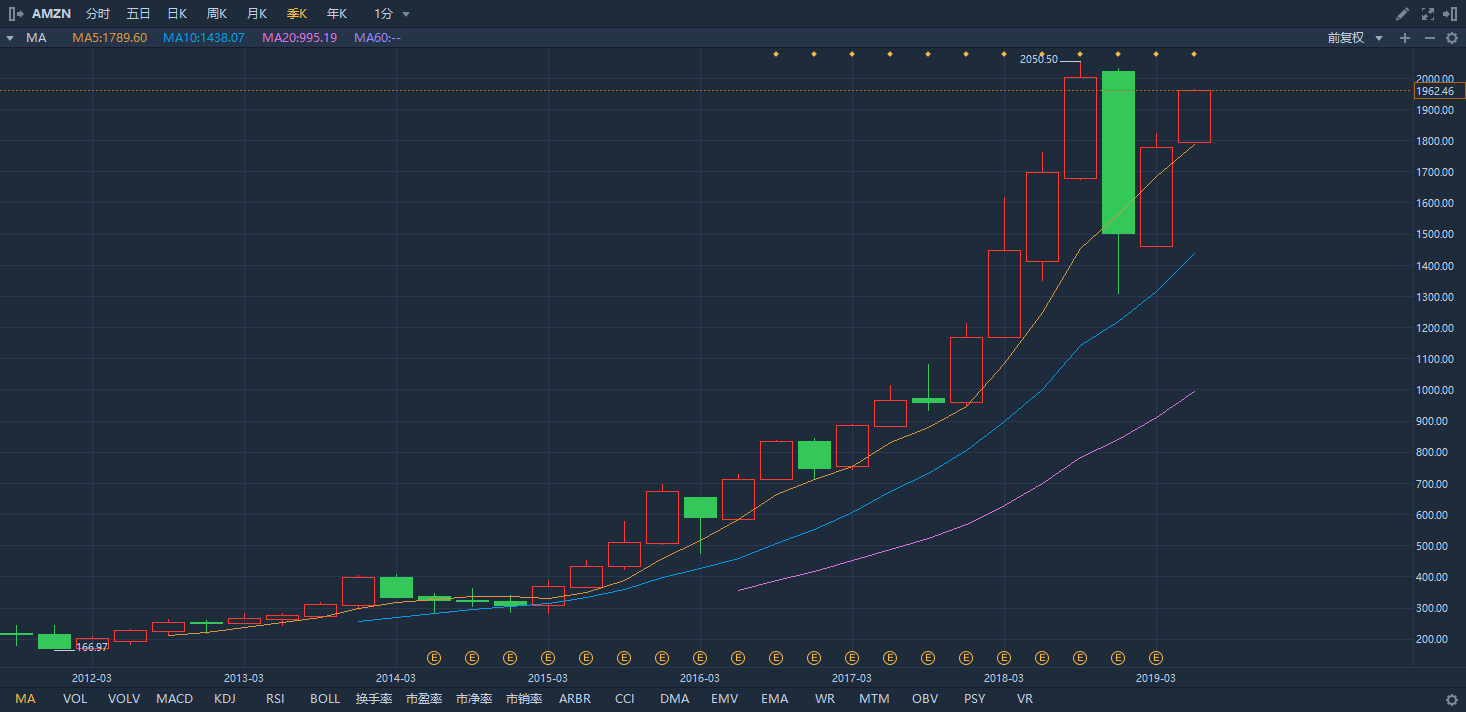 20年亏损市值成长至9661亿美金的巨头亚马逊,行情来源:华盛证券