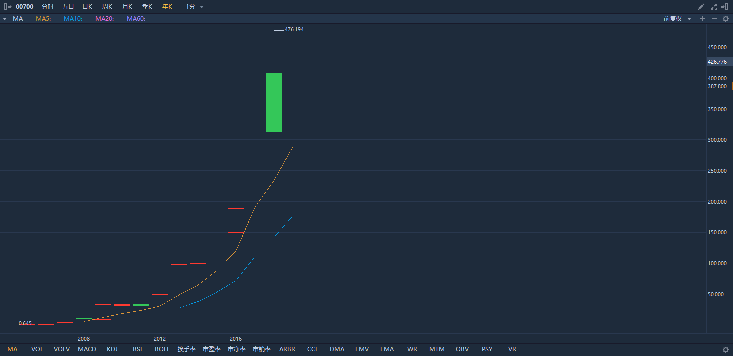 腾讯年线行情,行情来源:华盛证券