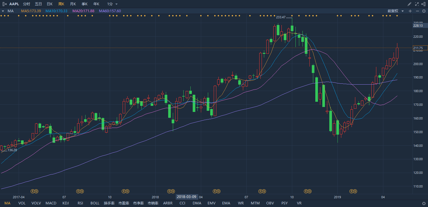 苹果周线行情,行情来源:华盛证券