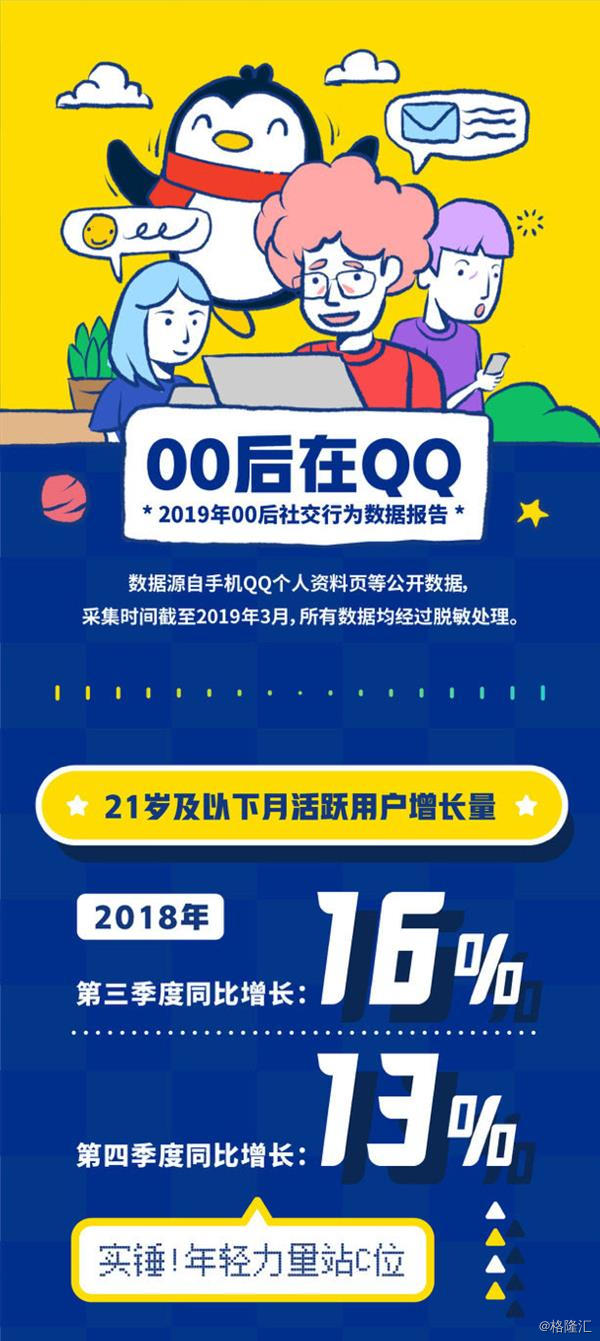 5月4日青年节当日,腾讯(00700.HK)QQ很应景地发布了《00后在QQ:2019 00后用户社交行为数据报告》,让家长/叔叔/阿姨/哥哥/姐姐们得以很全面地了解祖国花朵们的社交习惯。报告显示,尽管对于很多成年人而言,QQ早已荒废一角,但对于00后祖国花朵而言,QQ仍然是他们的掌上宝。