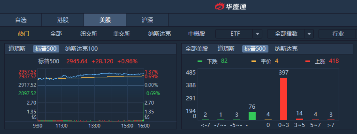 上周五,美股受非农数据提振,三大指数均收涨。标普500报收2945.62点,涨幅0.96%。道指报收26504.95点,涨幅0.75%。纳指报收8164.00点,涨幅1.58%。