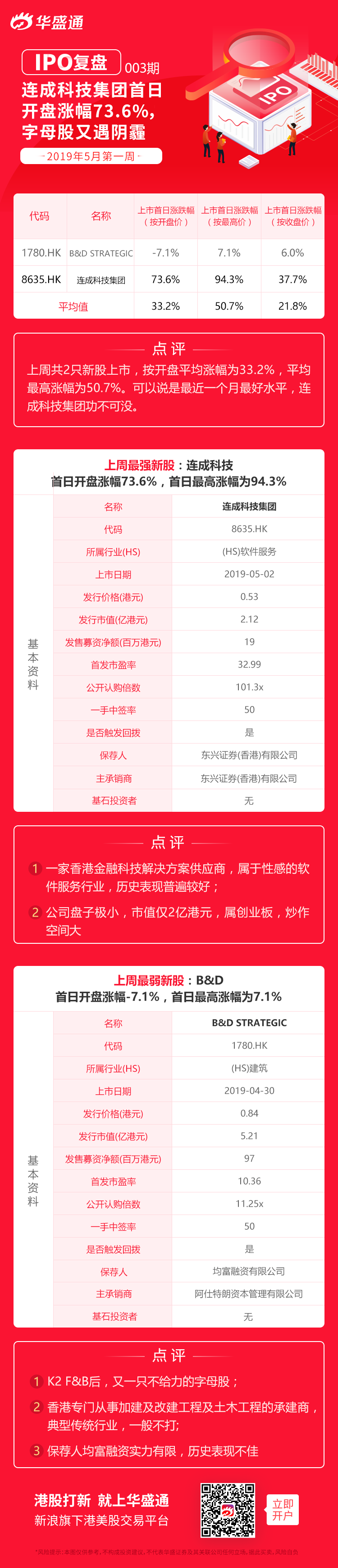 一周IPO复盘丨连成科技集团首日开盘涨幅73.6%,字母股又遇阴霾