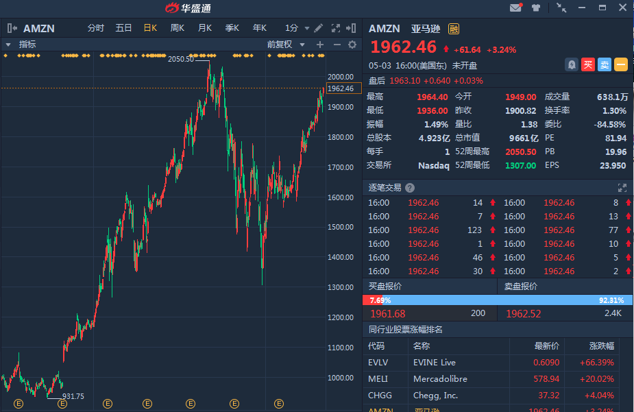 最新消息显示,股神巴菲特所在的伯克希尔-哈撒韦近期首次买入亚马逊(AMZN),巴菲特对记者说明:“办公室里管钱的其中一个家伙买入一些亚马逊”,不过并未透露买入的具体数量,持仓数据将于本月晚些时候的在季报文件中公布。