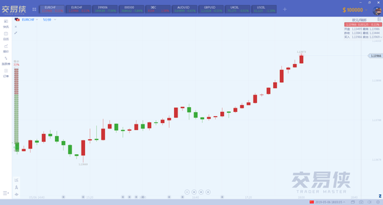 周一(5月6日),欧元兑瑞郎升至10.7291上方,创2009年7月以来最高水平。