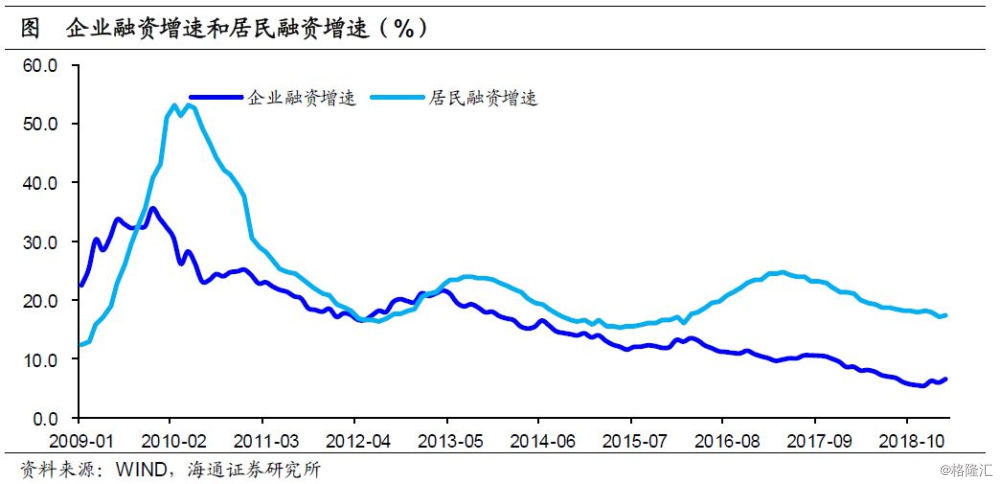 随着18年下半年维护民企融资的相关政策陆续出台,19年已经看到了宽货币向宽信用的传导,企业的融资增速探底回升。但考虑到需求,尤其是投资端难以大幅回暖,故企业融资增速没有大幅回升的动力。