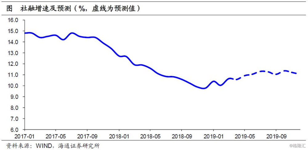 总体来看,19年宽货币向宽信用逐渐见效,企业融资将温和回升。而政府融资和居民融资增速高位回落,社融全年探底回升,走势将呈现L型,全年增速在11%左右。从融资对经济的领先性来看,全年经济也或将L型企稳,不会出现强周期的回升;结构上则是投资下行,消费回升。