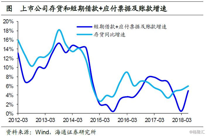 而除非标外,企业中长贷增速也出现上升,同比增速从16年年中的11%左右回升至17年年中的16%左右。16-17年处于上一轮的地产周期中,棚改货币化推动三四线去库存,地产销量和投资增速均出现回升。在地产周期的带动下,16-17年经历了企业和居民信贷增速的双重上行。