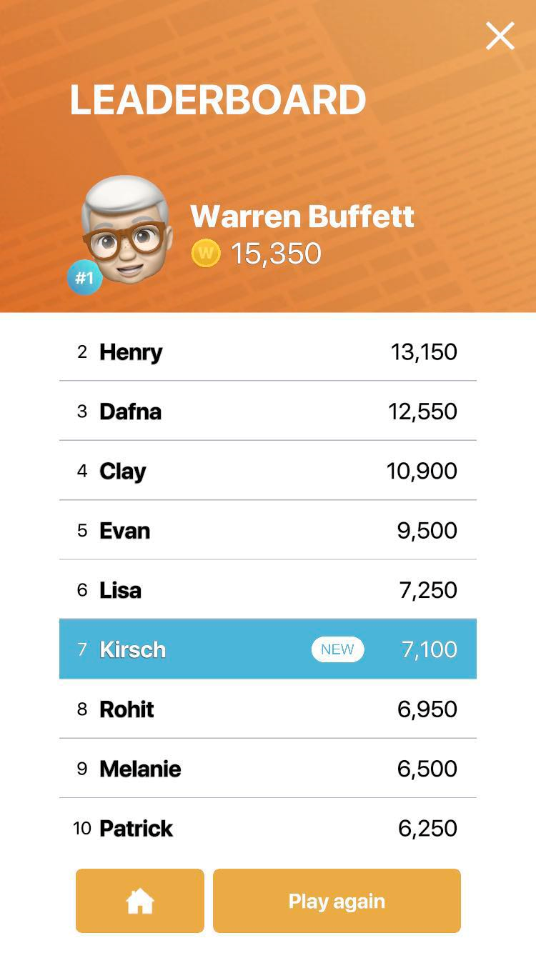这一游戏只有两级,街景分别取自巴菲特的家乡,美国内布拉斯加州的奥马哈,以及苹果总部,加利福尼亚州的库比蒂诺。其中,库比蒂诺的送报路线最终地点为苹果总部建筑。两级游戏通关后,总分还会登上一个非实时的排行榜。巴菲特在这一排行榜顶端,得分为15350。