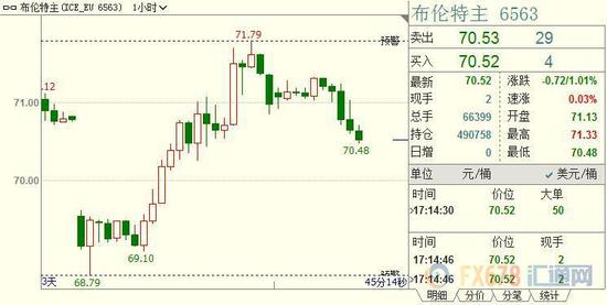 汇通财经易汇通软件显示,北京时间17:14,NYMEX原油期货下跌0.72%至61.81美元/桶;ICE布伦特原油期货大跌1.01%至70.52美元/桶。