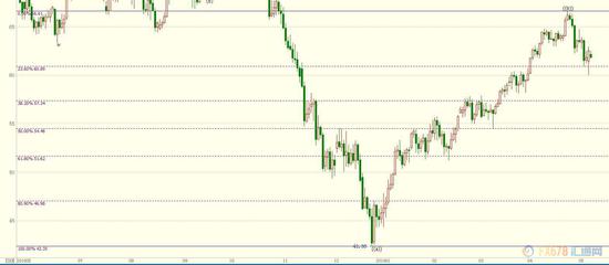 日线上看,油价预计将重新跌破60.89美元,即42.36美元-66.60美元上行((b))浪的23.6%斐波那契回档位。下一道支撑位看向38.2%斐波那契回档位57.34美元。