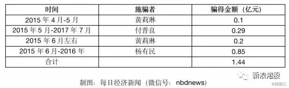 2015年4月-5月,黄莉琳以帮助天合化工集团股票复牌需要办事费为名,共计骗得该公司1000万元。黄莉琳将其中500万元转交付林,付林将其中400万元转交付普良。