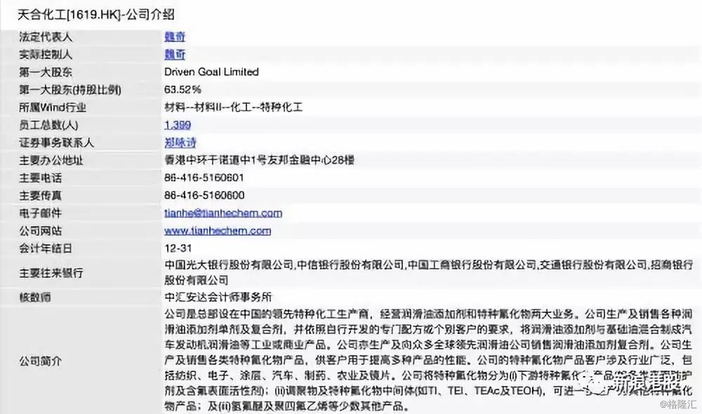 公司的业务主要是经营润滑油添加剂、特种氟化物两大系列的200余种精细化工产品。在天合化工中,魏氏兄弟(董事长魏奇、首席执行官魏宣)自然就是企业的核心,他们不仅是企业的最高领导者,同时也是公司的大股东。