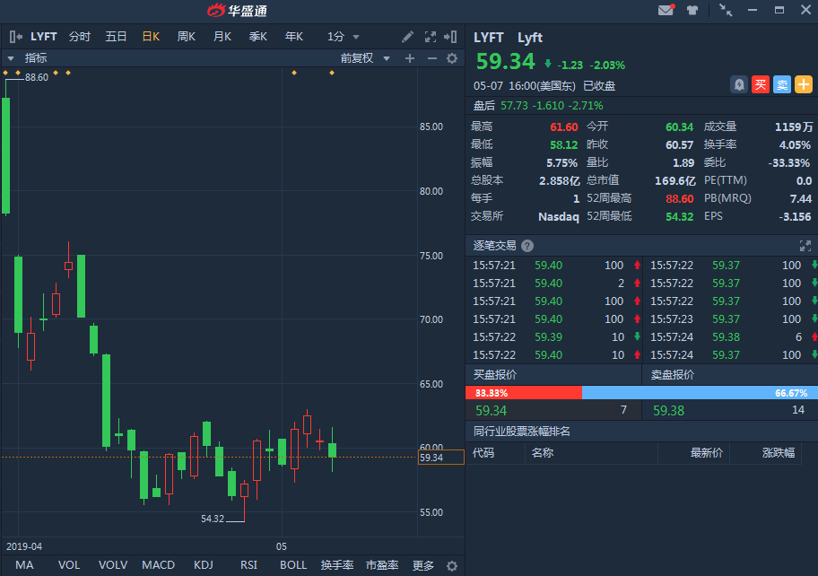 Lyft(LYFT)昨日盘后发布上市后的首份财报,Q1亏损大超分析师预期,盘后股价一度跌近4%,后跌幅缩窄至近2.71%。