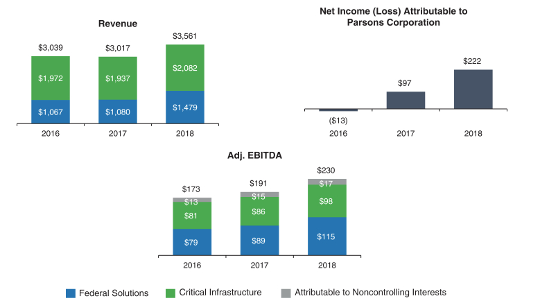 2018年,帕森斯创造了35.61亿美元的收入,净收入约2.2亿美元,其中,联邦业务对增长贡献较大,同比增长37.0%。同行对手Aecom在2018财年末的收入为200亿美元,雅各布斯工程集团(Jacobs Engineering Group Inc .) 2018财年结束时为150亿美元。对比看来,帕森斯的规模还不如竞争对手,这也表明公司的成长空间较大。