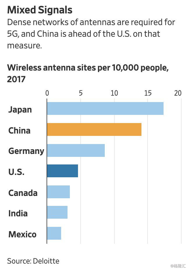 平均下来,中国每万人拥有14.1座基站,美国则是每万人拥有4.7座基站。