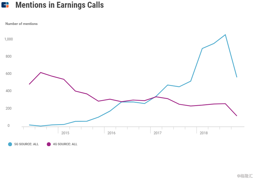 2018第三季度,全美公司财报电话会中提及“5G“的次数超过1000次,相比2017第四季度,增长了100%;