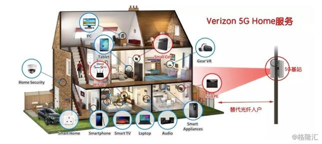 最早实现商用5G服务的是运营商Verizon——去年10月1日,Verizon宣称在美国4个城市推出了5G Home服务,通俗点儿说,也就是家庭宽带服务。Verizon通过基站发射5G信号,用户在家庭中通过CPE设备、再通过WiFi路由器,连接家中的上网设备。