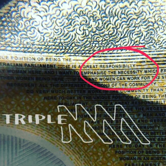 本周四,Triple M广播公司发布了一张放大版的“假钞”图片,圈出了这个近7个月都没有被发现的错误。