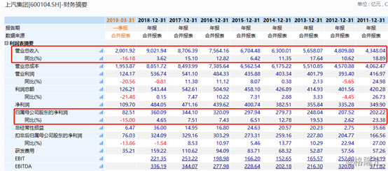2019年一季报显示,上汽集团营收下滑16.2%,净利润下滑15%。这也是上汽集团2009年一季度以来的10年中营收和净利跌幅最大的一个季度。