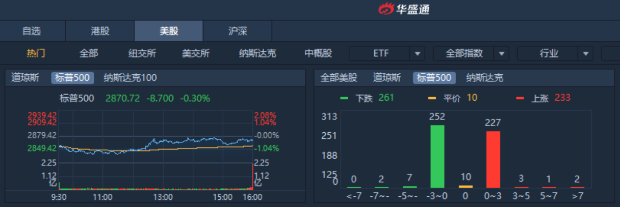 周四,美股盘中大跌后,跌幅收窄。标普500收跌0.30%,报2870.72点,创4月2日以来收盘新低。道指收跌0.54%,报25828.36点。纳指收跌0.41%,报7910.59点。