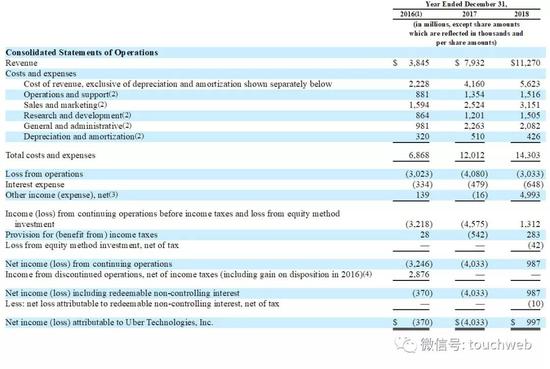 招股书显示,Uber在2018年营收为112.7亿美元,高于上年的79.32亿美元,同比增42%;