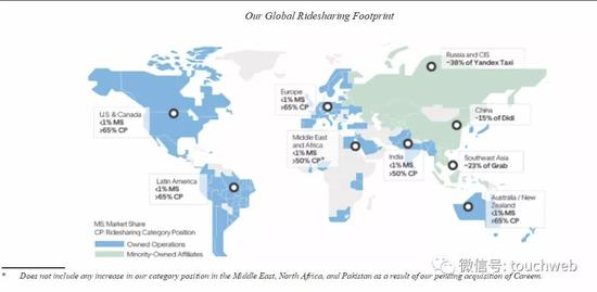 分地区来看,Uber的主战场是北美地区(美国和加拿大),这部分的年度营收61.5亿美元,第二大市场拉美地区的营收为20亿美元。