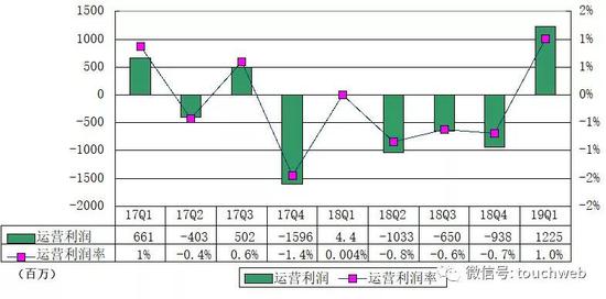 京东第一季度经营利润为12亿元(约2亿美元),上年同期为440万元。京东第一季度运营利润率为1%,上年同期为0.004%,上一季度为-0.7%。
