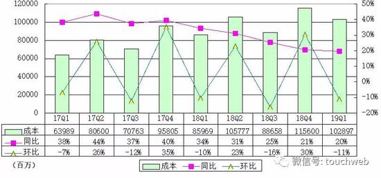 京东第一季度成本为1028.97亿元,较上年同期的859亿元增长20%,较上一季度的1156亿元下降11%。