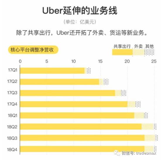 Uber也希望凭借占据营收大头的共享出行业务,将触角伸向更广泛的出行领域。