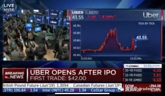 一、Uber(UBER.US)从一开始的预计开盘价格46-48美金,暴跌到42-43美金,跌幅高达10%