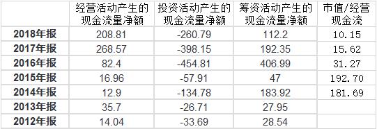 经营现金流也为正,投资为负,跟亚马逊有点像。这样的企业没有生存危机,即使财报显示当季亏损,实际也正常经营。京东上市初期市值/经营现金流比较高,但现在增速降下来,对比2018年的市值/经营现金流,京东甚至大幅低于亚马逊呢。