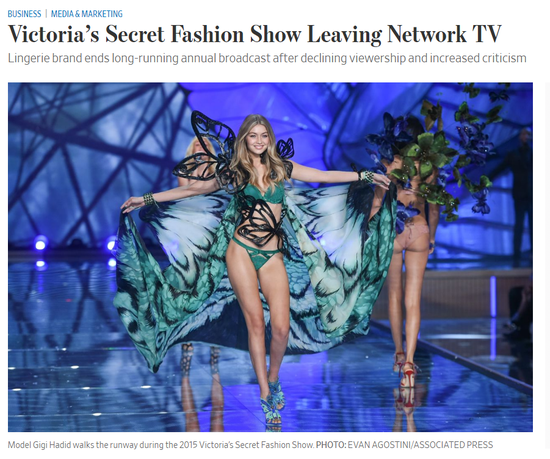 播出了近20年的维多利亚的秘密(Victoria ‘s Secret)年度时装秀或许将就此停播。近年来,维密秀的收视率持续下跌,而维密的母公司L Brands近年来因其营销策略而面临越来越多的批评。