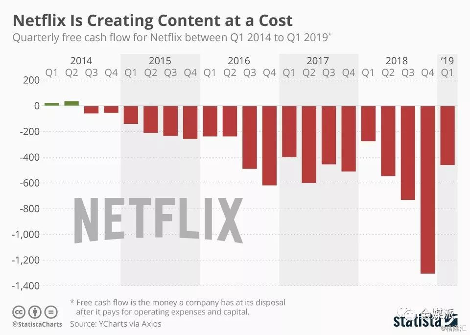 自2014年第三季度起,Netflix的现金流一直为负