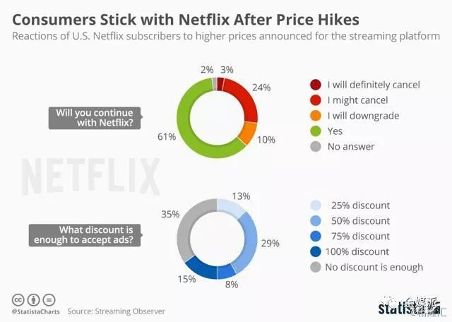价格上涨后,只有61%的美国消费者会继续使用原来的Netflix服务