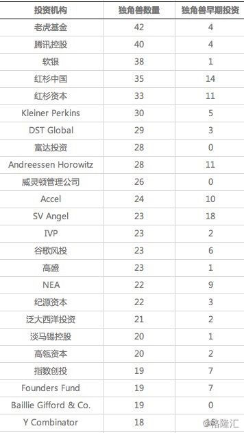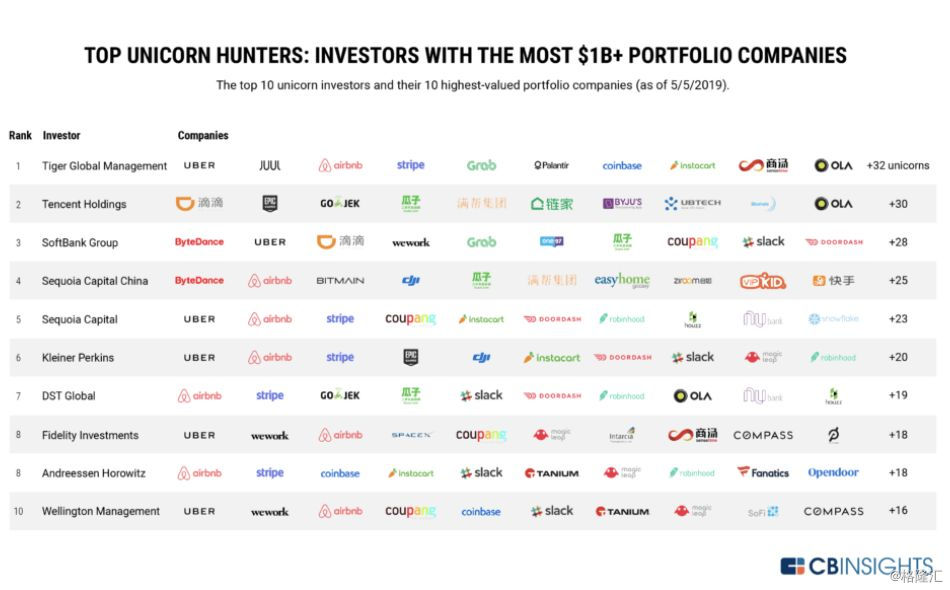 按照独角兽企业的数量来算,位于美国纽约的老虎基金以42家位居榜首。