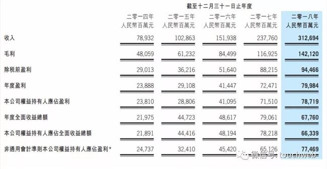 腾讯 2018 年营收为3126. 94 亿元,年度盈利为799. 84 亿元,腾讯公司权益持有人应占全面收益总额为663. 39 亿元。