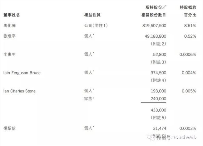 腾讯日前向港交所递交年报,年报显示,截至 2018 年 12 月 31 日,腾讯创始人、CEO马化腾持股为8.61%,为第二大股东;