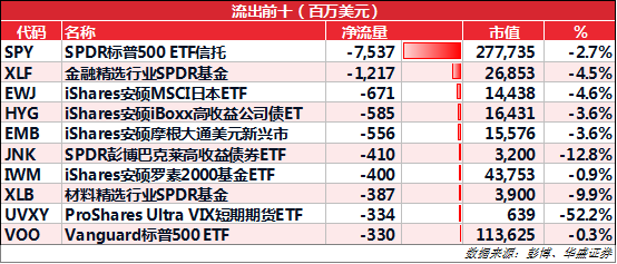 主要ETF变动情况: