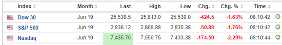 约20点10分左右,纳指期货跌幅扩大至2.3%,此前为1.8%;标普500指数期货跌1.7%,稍早为1.3%;道指期货现跌1.6%或420点。