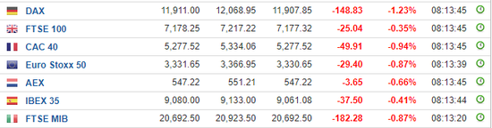 与此同时,欧洲股市跌幅也普遍下跌。截至晚间20点10分,欧股跌幅再次扩大,Stoxx600指数跌逾1%;德国DAX指数今日低开低走,目前跌幅扩大至1.2%。法国CAC 40指数跌近1%。