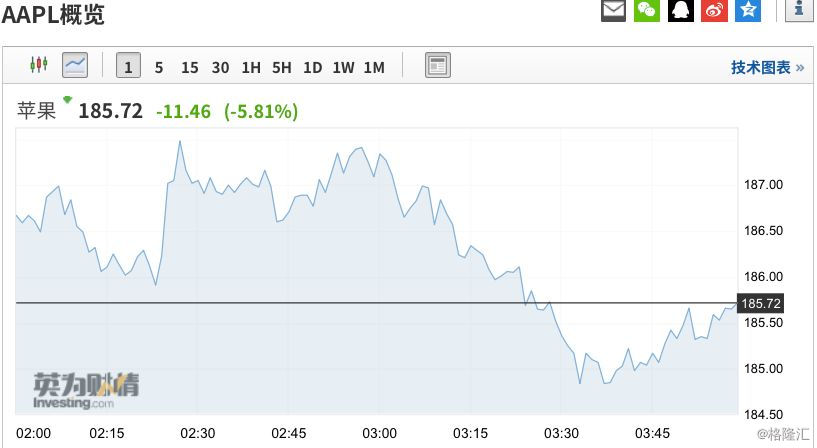 随着昨天的暴跌,苹果公司股价从去年10月的最高点233美元下跌了20%,实际上已经进入了熊市。