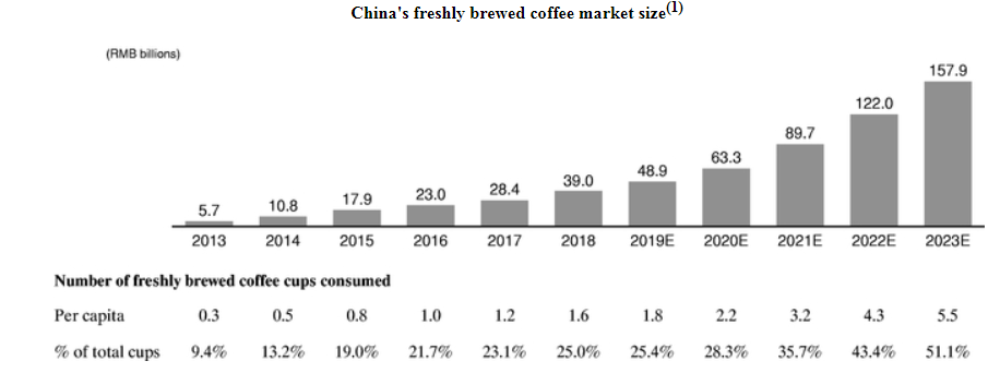 公司为中国最二大及增长最快的咖啡连锁店,经历多轮融资,申请上市速度超过拼多多。