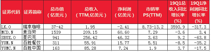 按公司2019年年底门店达到4500家,以单店铺单季度收入、单用户季度销售额或者累积单用户季度销售额分别预测公司2019年全年的收入情况,预计可达到21.35亿至28.44亿。按照10倍市销率算,公司估值在31.8亿到42.3亿美元之间。整体而言,当前在资本加持、扩张加速和梦想光环下,中值10倍左右市销率相对星巴克约3.6倍有相当高的溢价。