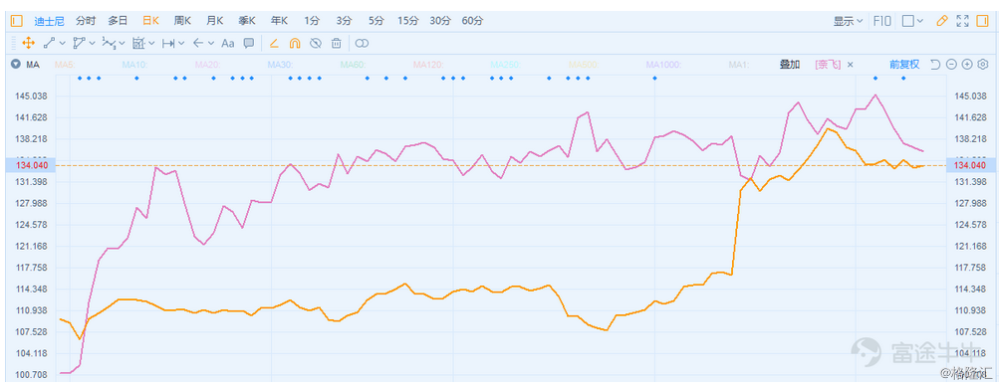 今年,宣布11月上线流媒体服务的迪士尼上涨了25%,奈飞上涨34%,表现都相当不错,或多或少透露了投资者对这个领域的认可。