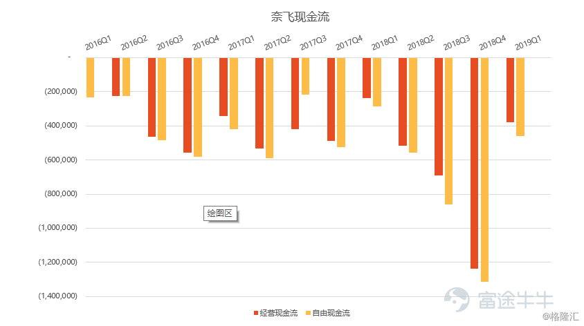 上图中,奈飞过去两年增速比较稳定。但是有一点我们不能忘记,过去是奈飞一家独大肆意起舞,现在是诸多入手入场,尽管定位、内容存在偏差,但或多或少会对用户增长造成影响,所以奈飞才会加速烧钱。在看待现金流这个问题的时候,我们必须要结合奈飞的发展阶段来看,公司并不是说一味的为了烧钱,而是因为要赶在大厮杀来临之前,用更多好内容、搭建与更多行业创作者的关系,寻求持久的发展。