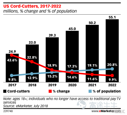 增量空间,来自于同样需要付费的电视公司。来看两张图。