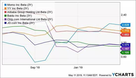 中国的宏观经济担忧和贸易战对陌陌的业务影响甚微。非常有趣的是,陌陌的 beta 值非常高,在宏观方面,它经常比同行经历更糟糕的日子。 尽管中国的 GDP 增长已经放缓,陌陌的收入仍在继续增长。 宏观环境只增加了股票的风险,高贝塔系数证明了这一点。